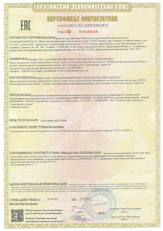 Сертификаты соответствия продукции